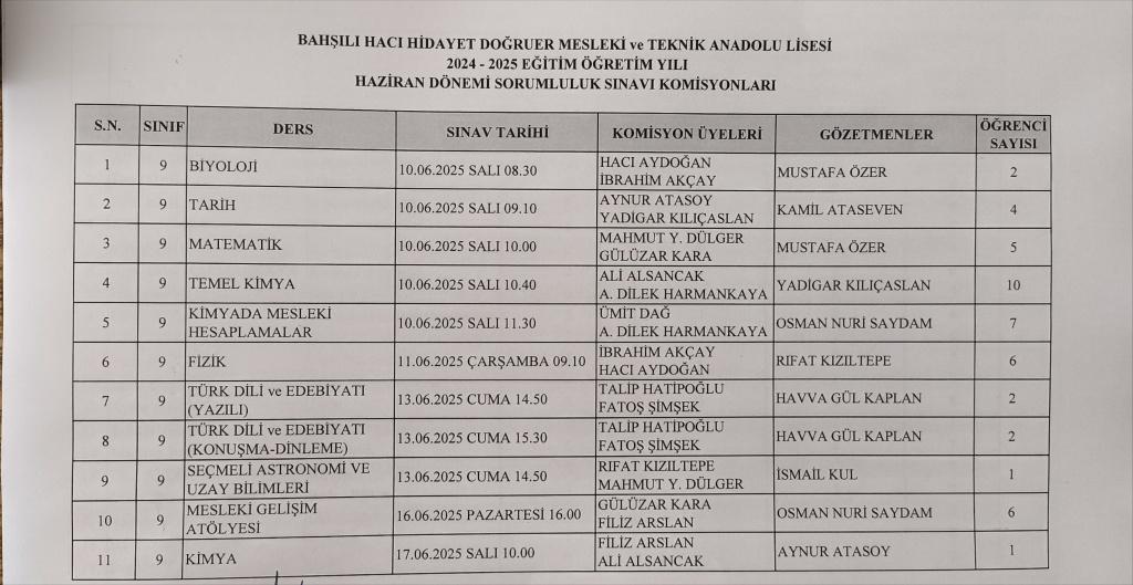 Haziran Dönemi Sorumluluk Sınavları takvimi aşağıda yer almaktadır. Sınava girecek olan öğrencilerimize başarılar dileriz.